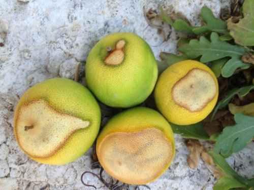 Lemon Diseases And Treatment - Tips For Treating Lemon ... from www.gardeningknowhow.com When phytophthora species are the cause of infection, the soft dark decay that develops in citrus occurs mostly on the bottom side of fruit. Plant diseases this citrus canker. Pests and diseases of fruit trees abound. In another page we have pictures of some of the garden pests being described below for identification purposes. Fruit growing near the ground are most likely to develop brown rot because the fungi infect though spores splashed from the soil. Citrus canker lesions are raised, unlike the sunken twig scars from hail injury or the roundish discoloring on fruit from cold and sunburn. And while it occurs at any ph, it is more likely to occur if the soil is too acidic. Orange fruit with brown rot lesion.